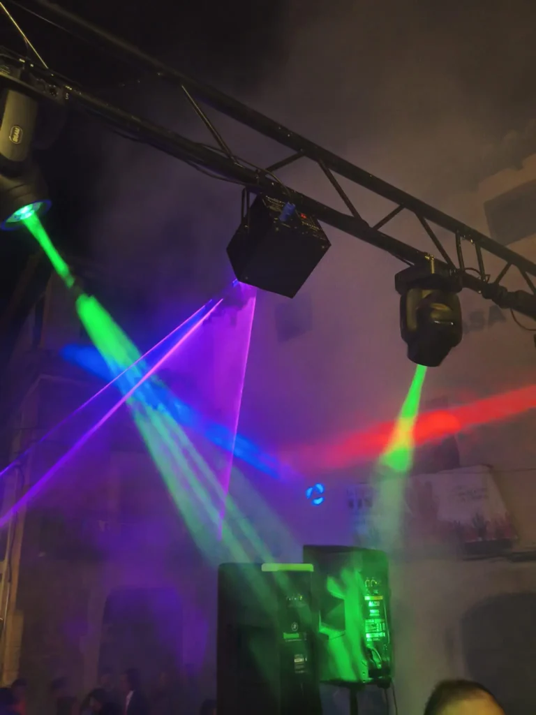 Diseño de luces, cabezas móviles y efectos visuales que crean la atmósfera perfecta.